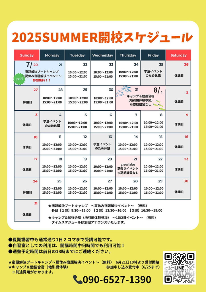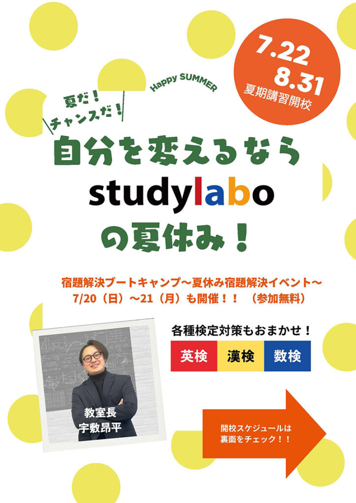 studylaboでは、2025年7月22日(火)〜8月29日(金)の期間、夏期講習を開講いたします!